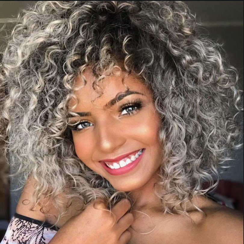 Home > Europe and the United States female short curly hair Exploded head chemical fiber headgear African small volume wig